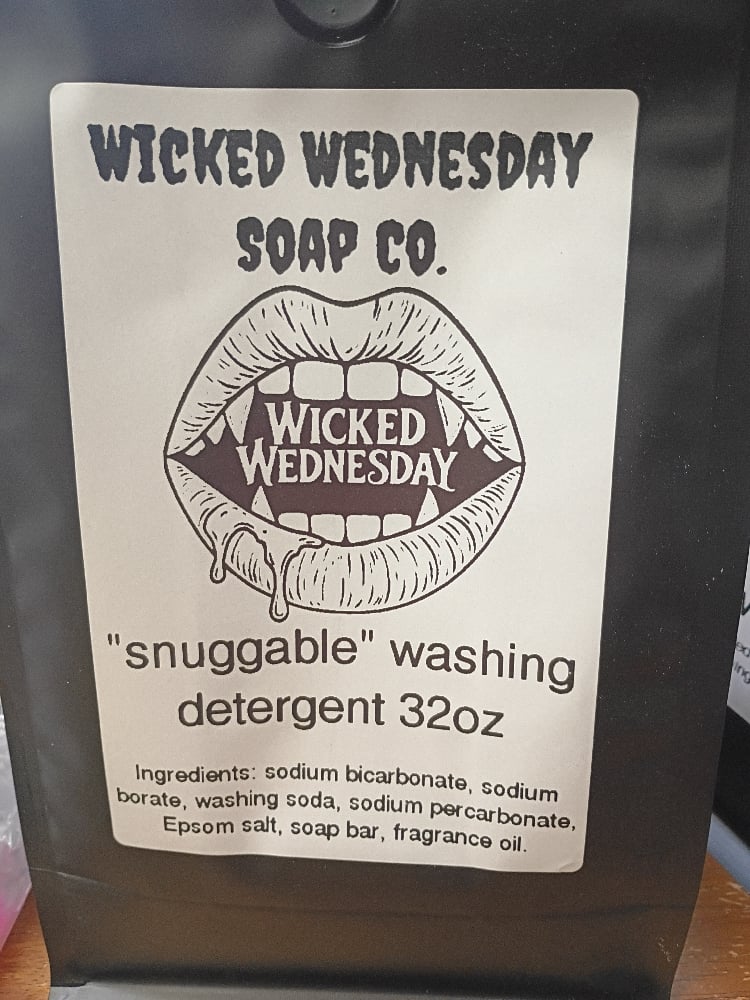 Your “Snuggable” Washing Detergent wraps your laundry in a scent that feels like warm skin, fresh linens, and that just-out-of-the-dryer comfort you want to bury your face in. It’s cozy, clean, and slightly addictive — the kind of fragrance that clings gently to fabrics without overpowering. Think fluffy blankets, oversized hoodies, and that subtle sweetness that makes people lean in a little closer. Underneath the softness, there’s still that signature Wicked Wednesday edge — comforting, but bold enough to stand its ground.