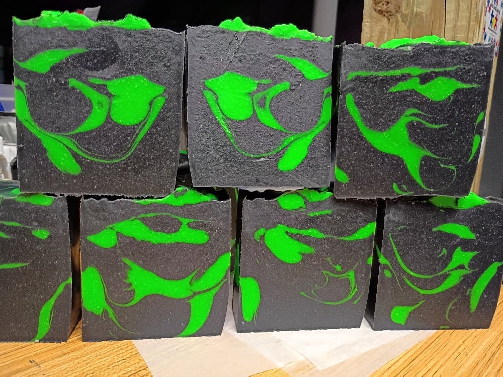 Coconut oil, water, olive oil, sunflower oil, palm oil, sodium hydroxide castor oil, kaolin clay, colloidal oats, fragrance, activated charcoal, mica