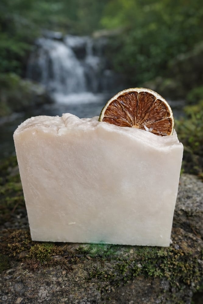 Canola oil, water, palm oil, coconut oil, lye, castor oil, Fragrances/essential oil, real orange, lime, lemon slice on top!